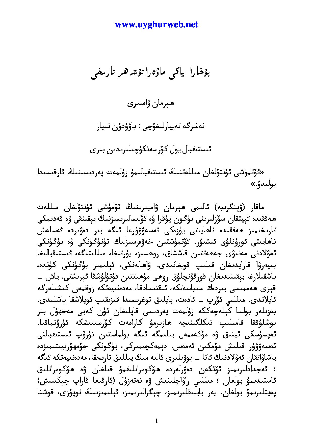 بۇخارا ۋە ماۋارەئۇننەھىر تارىخى